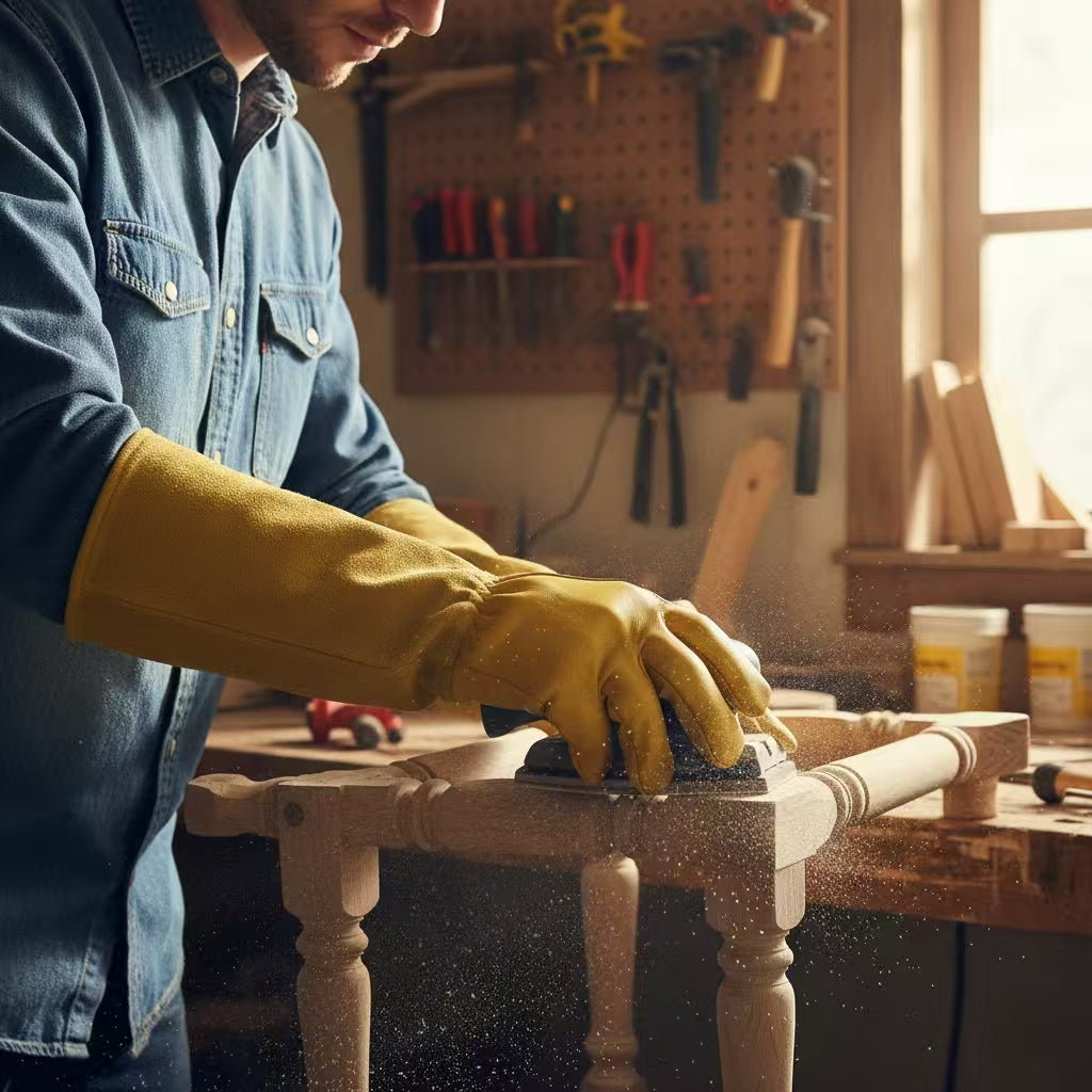 Dual Leather Design – Palm made of first-layer cowhide leather for superior durability and flexibility, and sleeves made of split cowhide leather for extra toughness and arm protection.